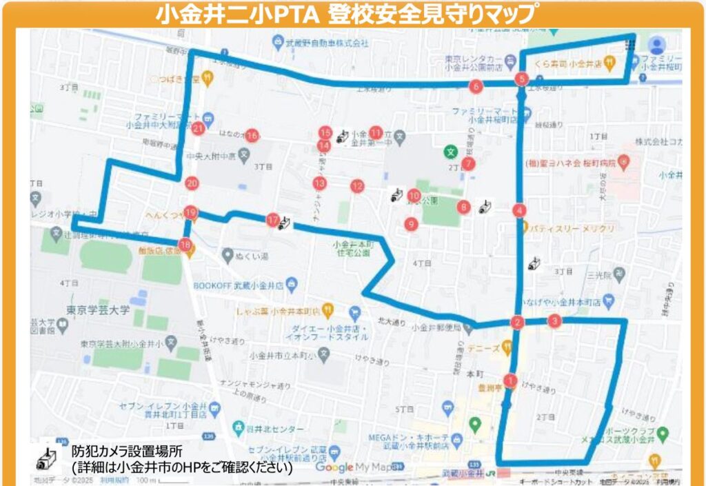 | ㉑ | 新小金井街道 中大付属・ファミリーマート前交差点 | 2名 | 7:40~8:00 |